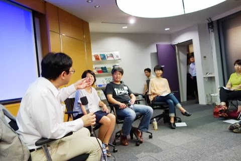 The panel was composed of the director of SONY CSL, Mr. Hiroaki Kitano (1); the leader of the initiative to bring about a new collaboration between the astronomy and the mathematics department of Tokyo University, Hitoshi Murayama (there are a lot of videos with him as well); a professor at OIST, Yoko Sugiyama Yazaki; and me. The moderator for the event was Yukiko Motomura (Japanese), from the Mainichi Shimbun.