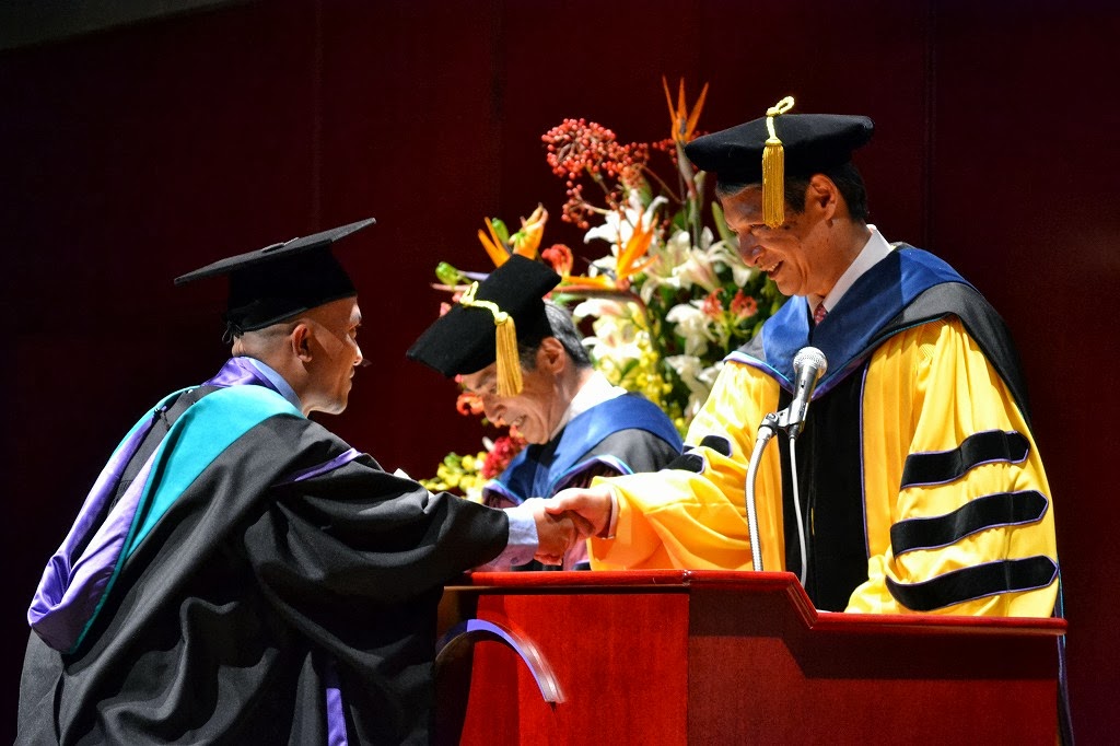 The autumn graduation ceremony at GRIPS is made up of mostly foreign students (seventy percent of the students are foreign students who come from over sixty different countries). The diversity and uniqueness of each country shines through and is awe-inspiring and is a rare sight in Japan. The ambassadors and staff members from embassies of the students’ countries often are present at the ceremony.