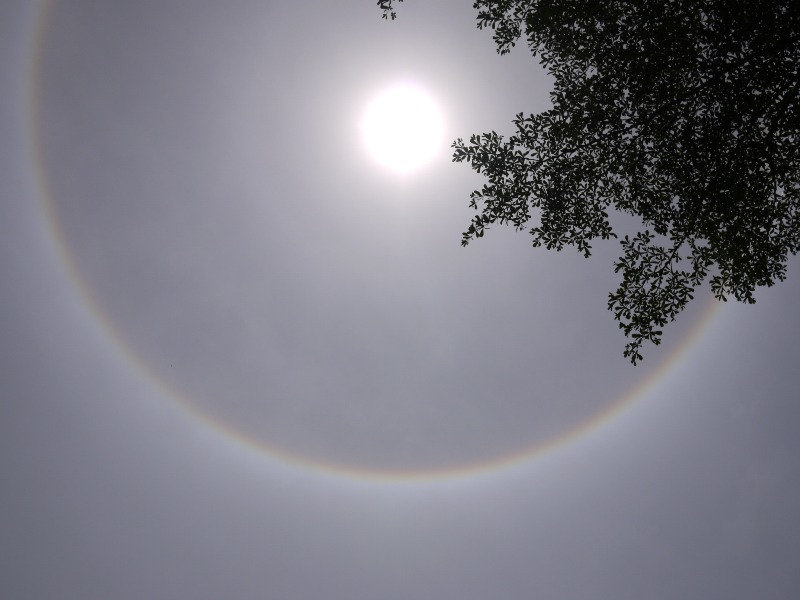 At lunch time, I looked up at the sky and incidently saw the ‘Circle Rainbow: Halo, (Photo on top) a rainbow around the sun just above us. It was a nice surprise.