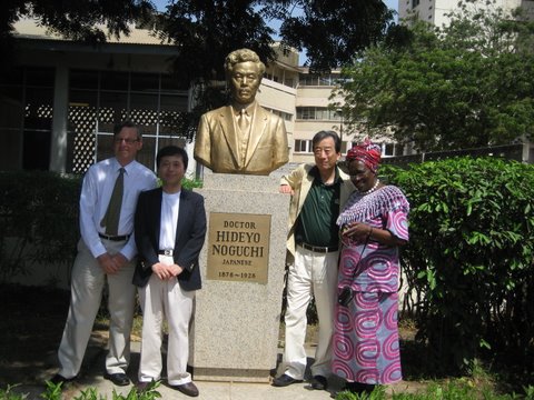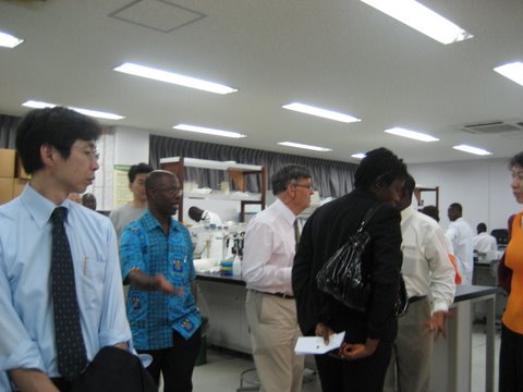 We then moved on to ‘Noguchi Memorial Institute for Medical Research’ established by the government of Japan. (Photos are included in the slide show above). The Institute is located within the huge premise of University of Ghana (Ref.1, 2) at Legon, the suburb of Accra. Scientists from University of Tokyo and Medical and Dental University are participating in researches on HIV/AIDS, H1N1, and so on. It is very encouraging to see the progress of research projects moving. I fully enjoyed the tour of the institute as well as active discussion with the scientists.