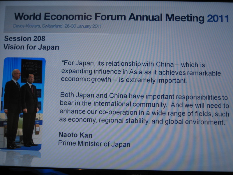 Overall, the Japanese media, I regret to say, seemed as if they did not exist at all. The list of media coverage is uploaded on the front page of the Davos meeting, and even the Huffington Post is in the list! The Japanese media were not listed once. Isn’t there any Japanese journalist or journalism that would speak/write not only to Japan but to the world? Are we not the nation of the 3rd largest economy? I did see several (but not many…) Japanese reporters in Davos. It seemed to me however, that even there Japanese reporters were sometimes trapped in ‘traditions’ such as the ‘kisha-club (reporter’s club)’ which is so powerful back at home. However, I saw some good signs in the phenomenon of participants being active in twitter. I like it.