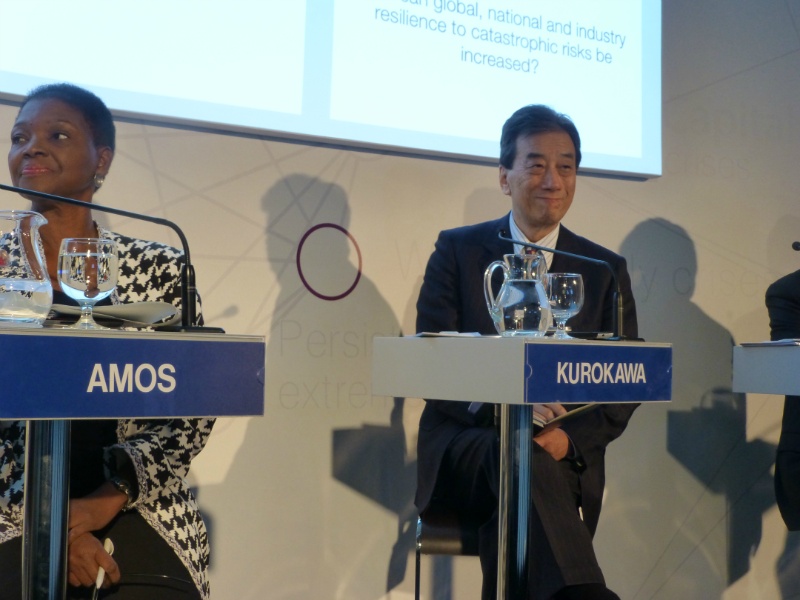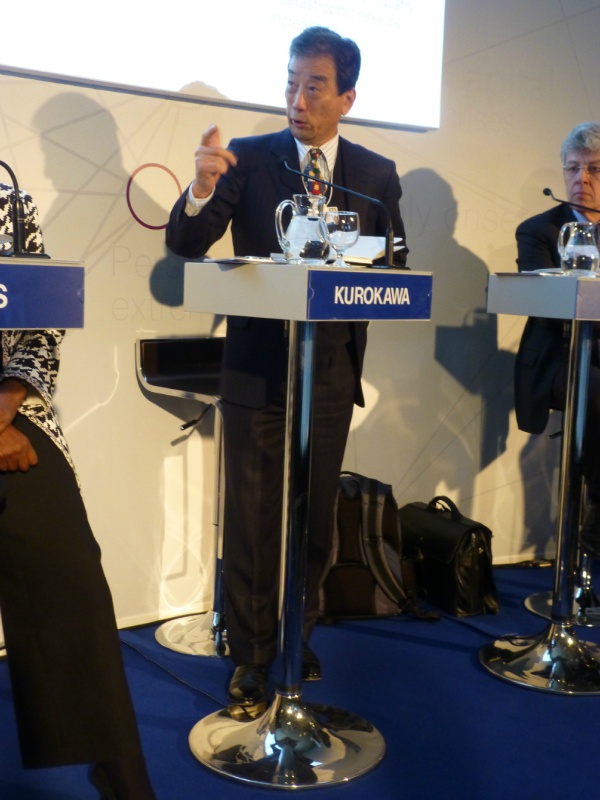 After that, I went to “Catastrophic Risks in the 21st Century”, of which I was a panelist. One of the panelists was Judith Rodin, who is the first woman to be the president of Ivy League university. I had wished to meet her for some time, and since Judith and I found several key mutual friends from when I was at the University of Pennsylvania, our conversation flowed even before the panel discussion started. I handed all of the panelists the English Executive Summary of the NAIIC report. I was not able to attend thewell-acclaimed speech by Prime Minister David Cameron then in the main auditorium, but I’m sure I will eventually see it online.