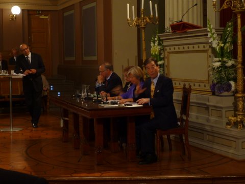 At night, I went to the reception at the Norwegian Academy of Science and Letters. Prof. Hitoshi Murayama, the Director of the Kavli IPMU at the University of Tokyo also arrived.