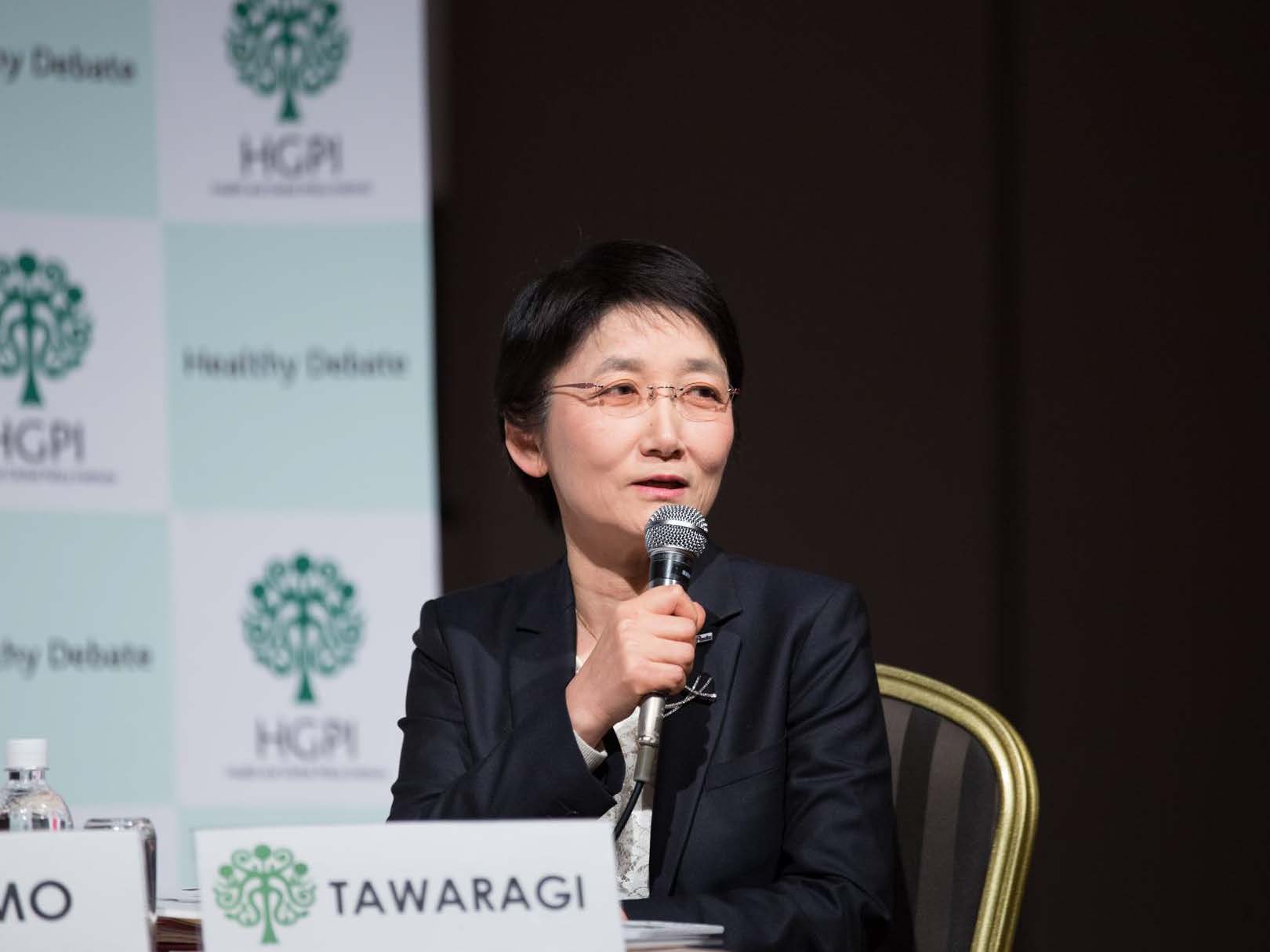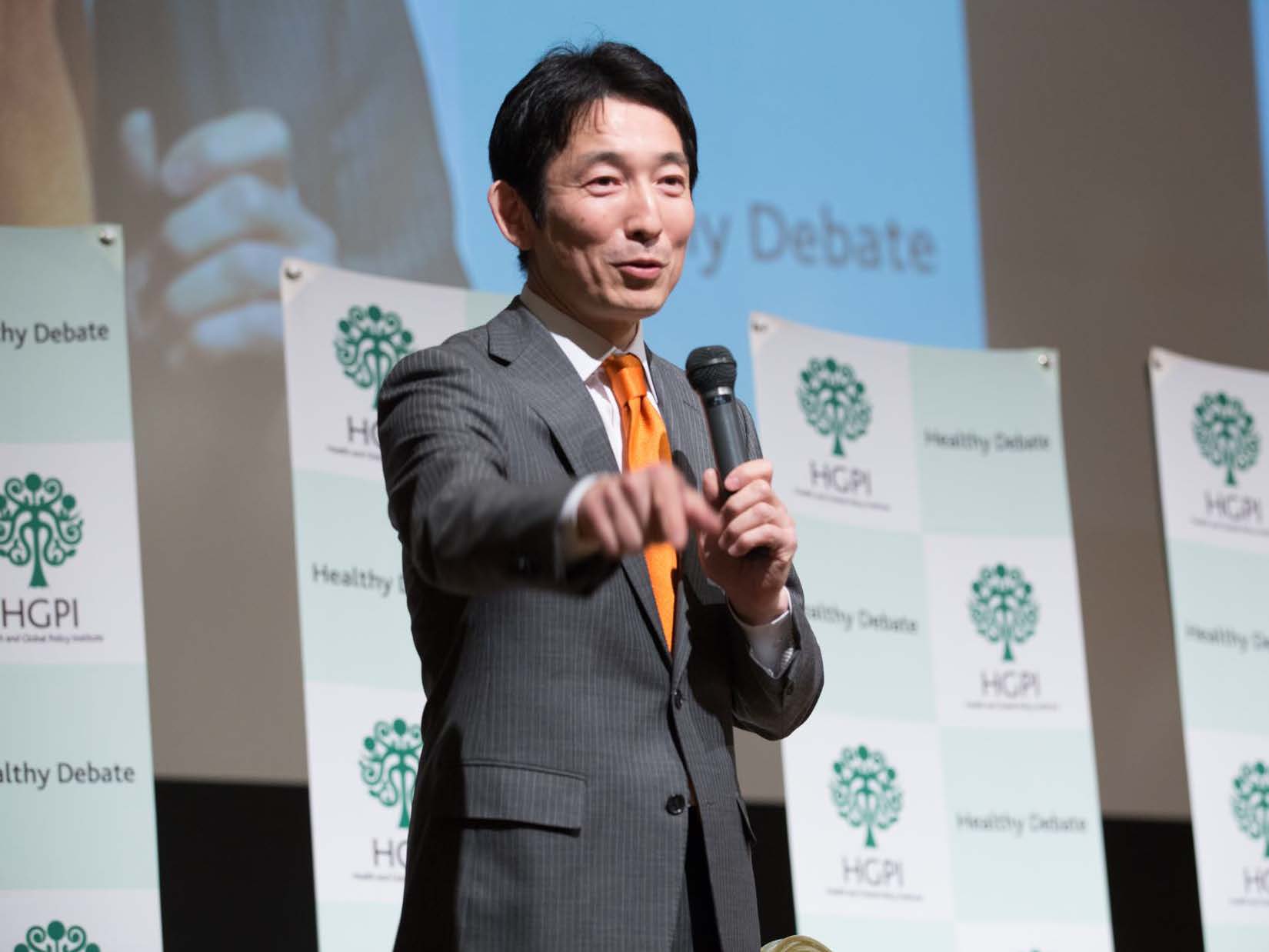 The third panel, “The Future of Health Care” had the following panelists, who come from different backgrounds: Seigo Izumo, who recently moved to Takeda Pharmaceutical Company; Tomiko Tawaragi, the Chief Safety Officer at the Pharmaceuticals and Medical Devices Agency (PMDA); and Shinsuke Muto who is very energetic. The panel was moderated by Ryoji Noritake of HGPI.