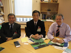 GenevaからLondonに入りました。目的はTony Blair首相の科学顧問(Chief Science Advisor)で、私のcounterpartというべき立場にある旧知のSir David King氏に会うこと、それから“Stern Review Report”のSir Nicolas Stern氏のスタッフと会うことです(本人はインドに出張中でした)。2008年に日本が主催するG8 Summitの件もあるので、野上大使もご一緒してくれました(写真1)。とても有意義な時間でした。