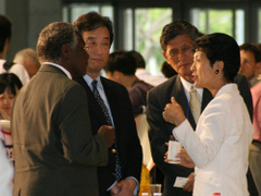 Psa7写真2: 開会式のレセプションで、右から妃殿下、WHO西太平洋事務局長Dr Shigeru Omi、私、Harvard大学Calestous Juma教授
