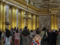 美術館は素晴らしいの一言に尽きます。入り口から階段をあがったところ(写真1)が特に素晴らしく、内部の床の大部分が木で造られているのもいいですね。当時はどんな暮らしをして、何をしていたのでしょう。庶民や農奴といわれる人達はどんな暮らしだったのでしょう。人口の構成もどんなものだったのか・・・。ここの展示品のほとんどが Heritageのサイトで見ることができます。サイトを見るとわかりますが、IBMの支援の大きさが窺えますね。ダヴィンチの絵は20枚もないと思いますが、ここには2つの有名な絵、「Litta Madonna」と「Benois Madonna」が対になって展示されています。見れば、あの絵だなとすぐ分かるものです。また、ルーベンスの「メデューサの頭」が特別展示されていました(これは撮影禁止でした)。マチスのコレクションも素晴らしかったです。これらの絵画は上記のwebsiteでご覧ください。ルーブルやヴァチカンもそうでしたが、大広間は当時の栄耀栄華が垣間見え、素晴らしいものでした。