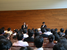 写真3 田坂さん(左)と渋沢さんの対談。