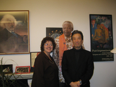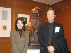写真3 NYASの受付に置かれたDarwinの胸像の前で、NY総領事館の三浦副領事と