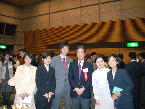 終了後は恒例のレセプション、日野原先生の他に、今年は学生さんや研修医の参加が多くて楽しかったです(写真2)。後で学生さんたちから嬉しいメールをたくさんいただきました。世界を広く体験し、グローバル時代に相応しいキャリアを求めて欲しいです。将来は若者たちのためにあるのですから。