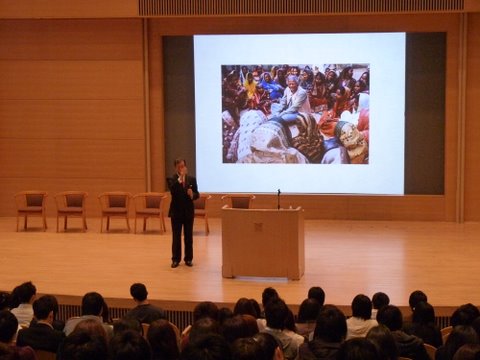 私の話は、多くの新入生が生まれた1992年前後の日本、世界の変化などについて話しながら、これからのグローバル化世界の動き、日本の課題などについて話を進めました。私のサイトにいろいろなタイトルで、いろいろな形で、繰り返し出てくるテーマです。