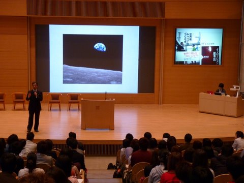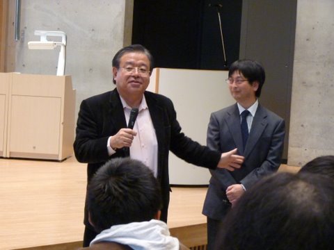 4月6日は、慶応義塾大学SFC の新入生1,000名を迎えて、いろいろな行事があるのですが、今年の特別講演にお招きを受けました。光栄なことです。村井 純 (資料1)(環境情報学部)、国領二郎 (資料1)(総合政策学部)の両学部長としばらくお話しをした後、θ館講堂で(入れなかった人たちは別室でもテレビ中継があったそうです) 80分ほどの時間をいただきました。