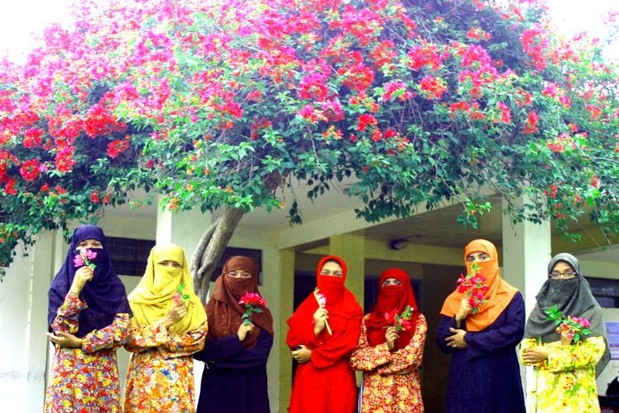 ところで、このプログラムの募集をかけたとところ、10名の枠に直ちに20数人の応募があり、なんとイスラムのこの国で7名の女子生徒(トップ写真)が集まってくれました、と。