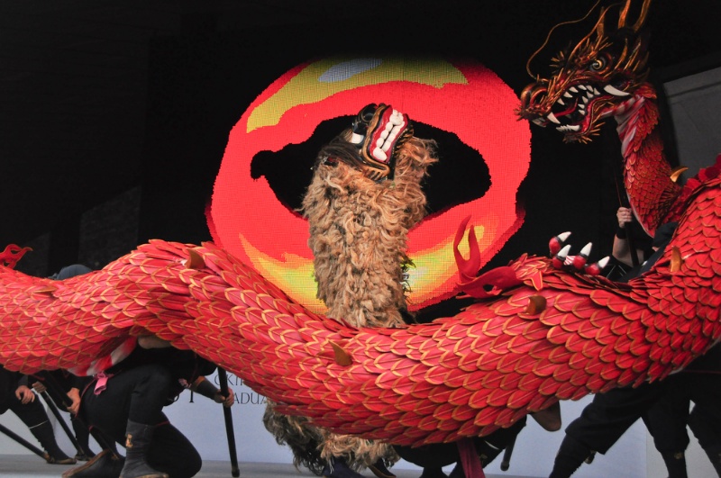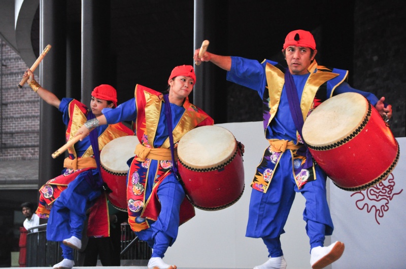 あいにくの雨で、この式典は素晴らしい中庭で開催される予定が、講堂での開催に変更になりましたが、幸い午後に雨は少しやみ、記念祝賀の踊りなどが20分ほどですが、中庭で開催されました。