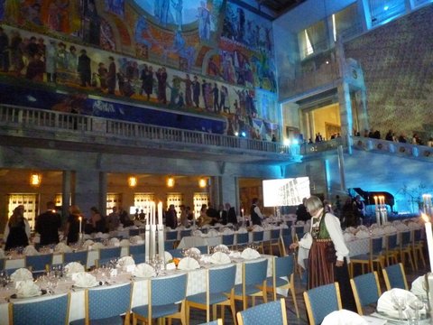 夜は、Oslo City HallでNorway 政府主催の晩餐会に出席。ここでも国王も出席され、とても気楽にメインテーブルについておられます。ここでもいくつかの演奏や合唱などもとても素敵で、気取らず、楽しいものでした。