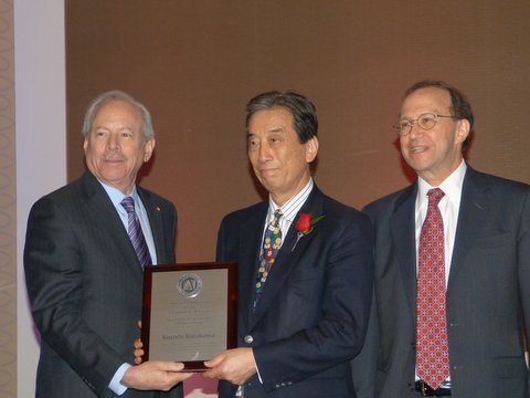AAASの授賞式では8つほどの賞があり、一人ひとりの受賞理由がDr Press会長から紹介され、AAAS CEOのDr Leschnerから受賞の「盾」を渡され、3~4分ほどの挨拶をするのです。私の挨拶は好評でした。このサイトでも紹介しているDr Bruce Alberts(Editor-in-Chief of ‘Science’)、Nina Fedroff(AAASの去年の会長で今年は理事長)(1)、Norman Neureiter(1)の他に、日本からも何人かの友人が出席してくれました。