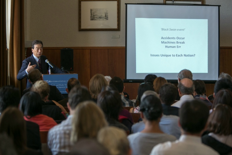翌22日はUCLAのChancellor学長 Gene Blockほかと会議、さらにRoyce Hall(1)の小さめのホールで‘Global Agenda in Post Fukushima’の講演。部屋は120人ほど(?)の方々で超満員。私の米国での恩師の一人Charles Kleeman教授もご夫妻で来てくださいました。