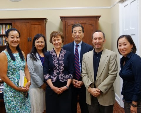 Chopp学長(1)、さらに3人の日本の女性で教鞭を取る角田こずえさん、城よしこさんと須田あつこさんたち(海外で独立して活躍している日本人には女性が多いな、と私は思っているので、「やっぱりね」と感じました)、また日本文化について教鞭をとっているDr William Gardnerさん(JETプログラムで日本にいたことがある)ともお会いしました。いろいろな話題について、1時間ほど時間を過ごしました。