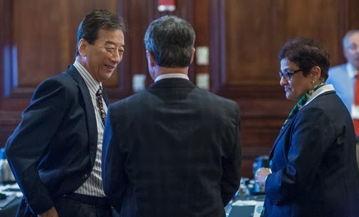 バイオテクべンチャー、べンチャーキャピタル等々の良いテーマとパネリストで、製薬、米国と日本の動きなどを中心に話が進みます。昼食の終わりを見計らって、私の登場、”Fireside Chat with Dr Kiyoshi Kurokawa: How Can Japan Better Foster Innovation?” というセッティングで80分ほど、David Flores(Co-Founder of BioCentury Publications)とHoward Brooks(Partner, Americas Life Sciences Sector Leader, Earnst and Young; この会議中に同じ部門のGlen Giovannettiともいろいろ話ができましたが、、)の2人からの質問に答え、あとは会場との質疑応答という趣向です。