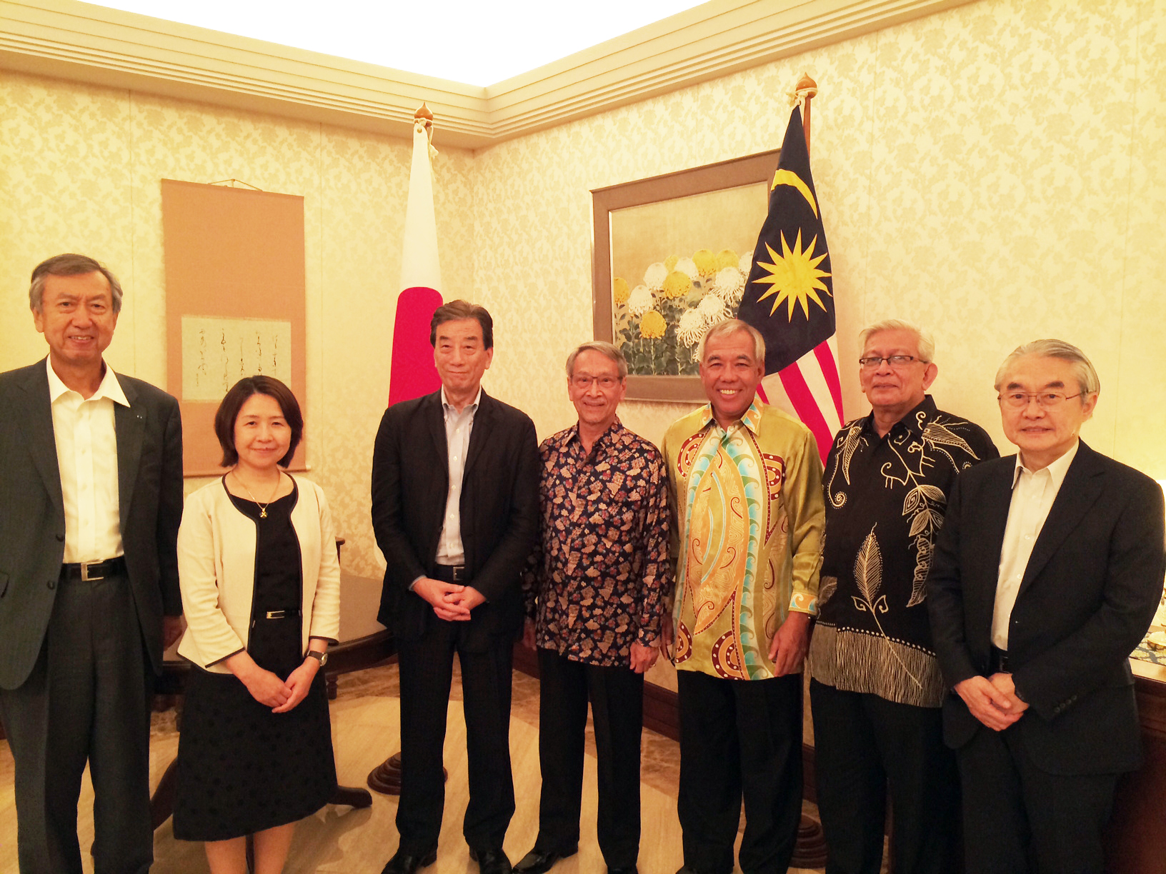 到着の夜は、現地の宮川大使(20年前にもご当地に勤務です)のお招きをいただき大使公邸でごちそうになりました。マレーシアの科学者のリーダーたちも参加して楽しい時を過ごしました。マレー人の名前の構造などの読み方なども教えてもらいました。宮川大使のご配慮に感謝です。