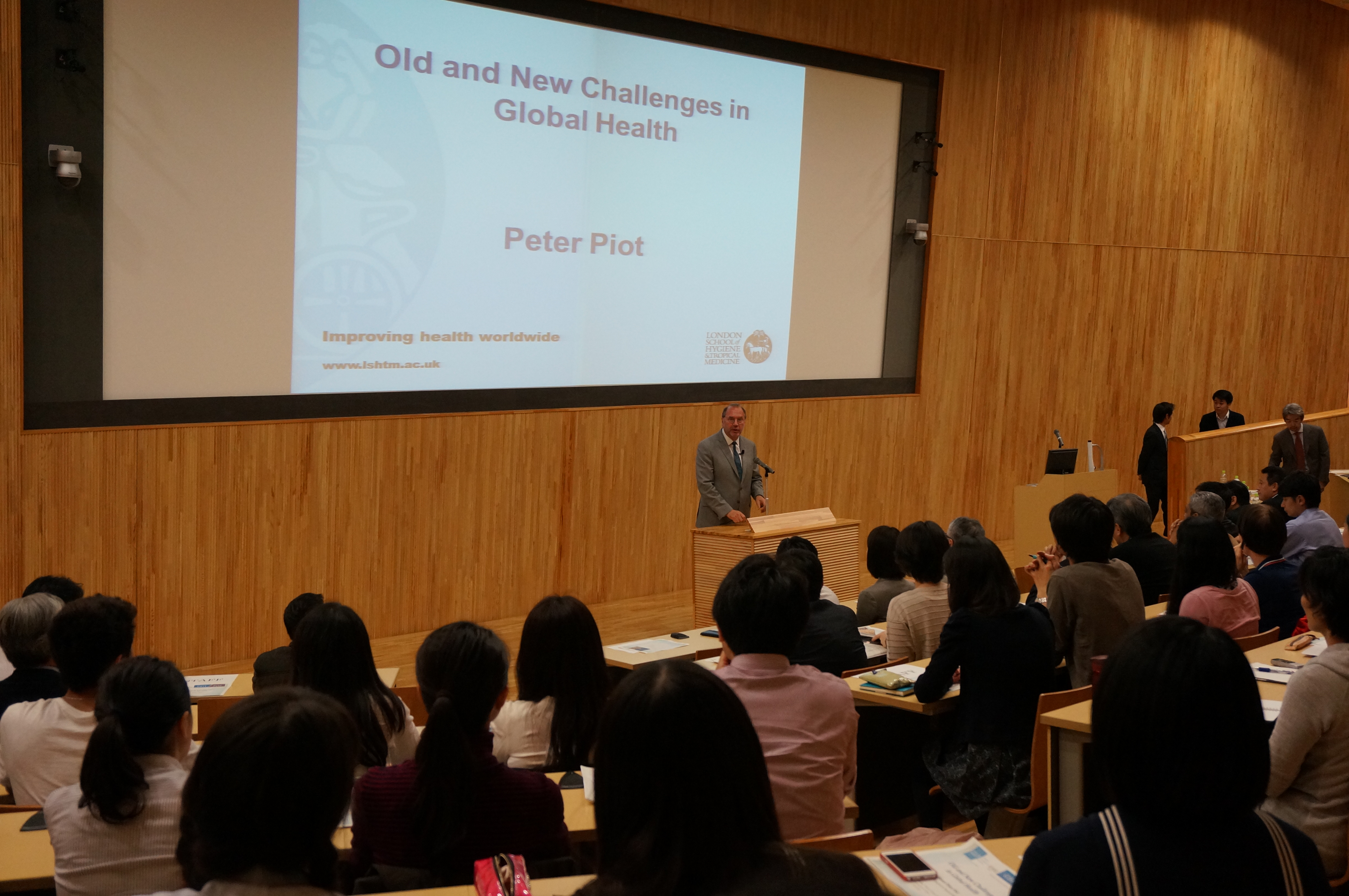 そうこうしているうちに、10月末にはLondon School of Hygiene and Tropical Medicineの院長(これは大学院だけなのです)のPeter Piotさんを迎えて、GHITの講演会を開催しました。