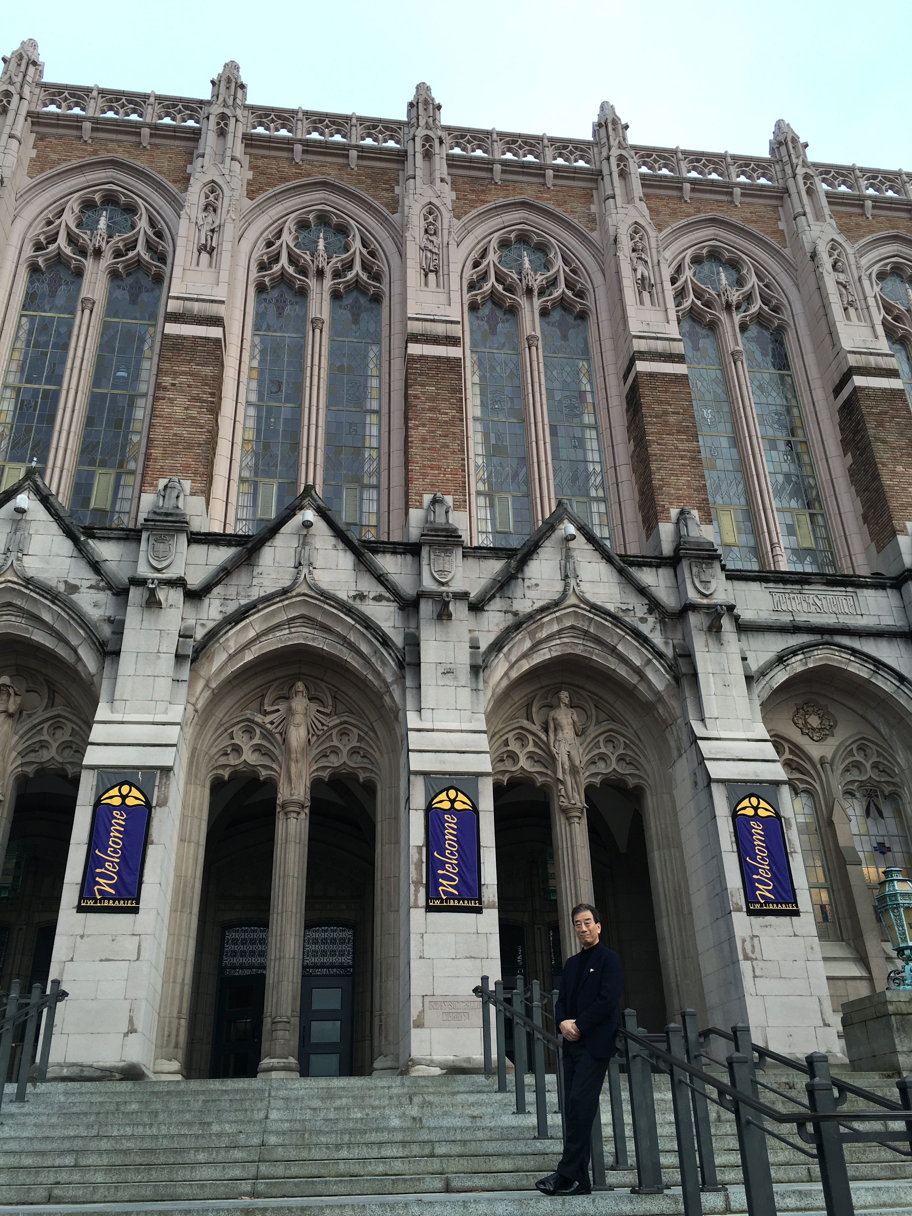翌日は、ワシントン大学のキャンパスへ出かけてみました。世界の大学ランキングでも上位にランクされている米国の公立大学の一つです。広大なキャンパスの中心に見事な桜が植えてあり、春には見事な眺めでしょう。図書館も多くありますが、その中心でもある Suzzallo and Allen Libraries に行ってみました。さすがに立派なものです。