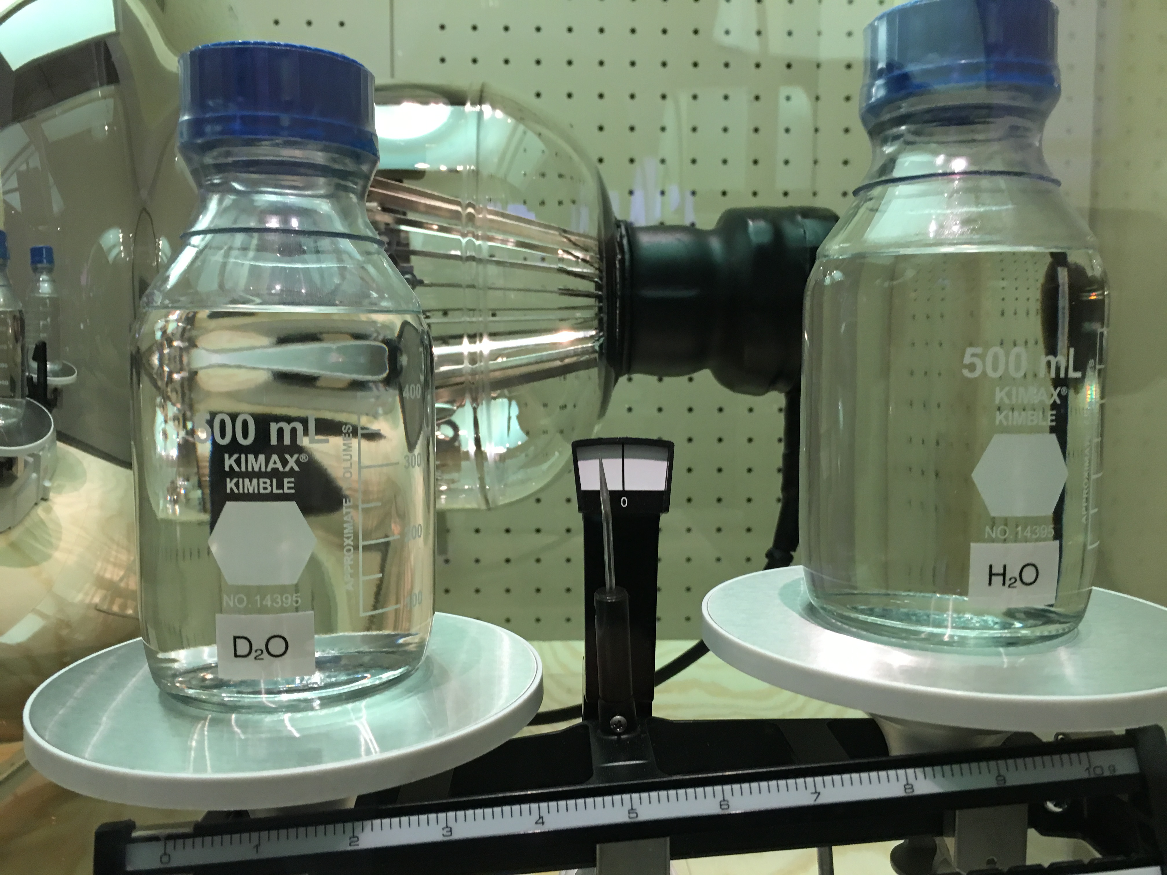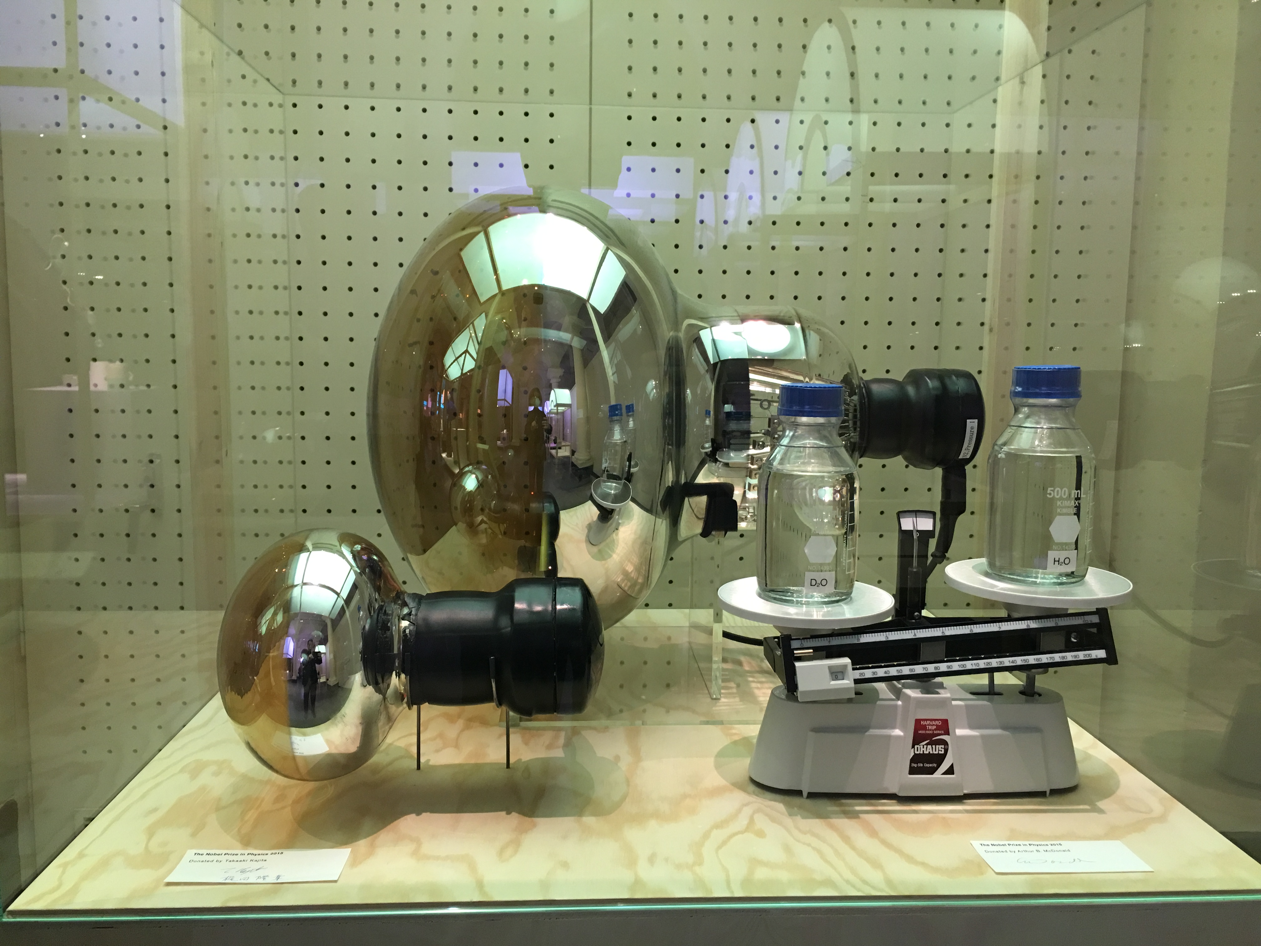 私も、twitterでいくつか写真のを掲載しましたが(12月9日、10日のツイートをご覧ください)、カミオカンデ展示で「水と重水の重さの違い」を一目瞭然にした写真への反応が良かったです。