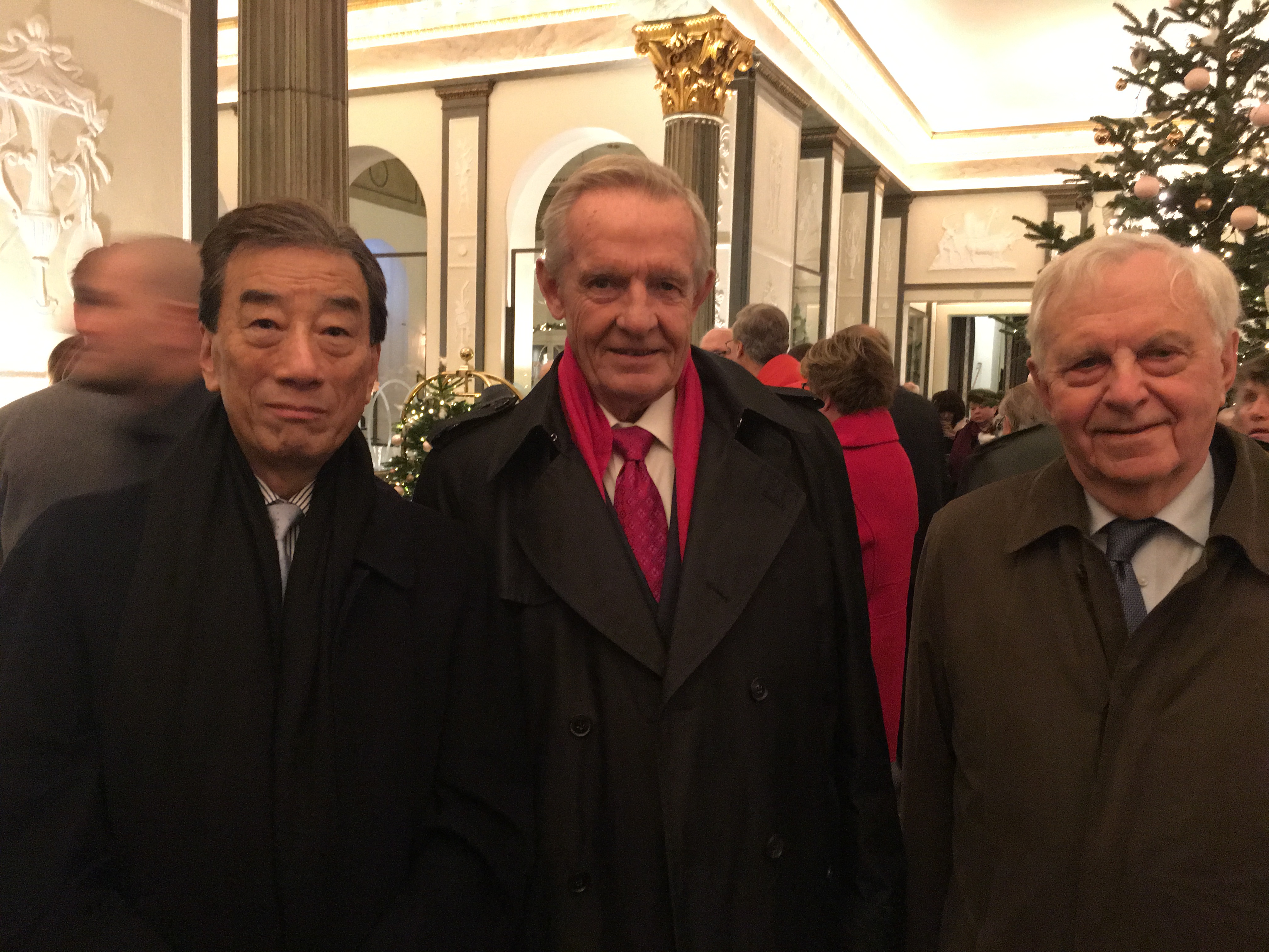 その時のことですが、当時の大塚清一郎大使に昼食のお招きを受け、今回と同じThe Grand Hotelに行った時のことです。そこのレストランにLindqvist博士が、ご家族10人ほどとおられたのです。それは博士のお母様の80何歳かのお誕生日ということでした。そのことを聞いた大塚清一郎大使(1、2)(多芸で「歌う大使」の異名も、特にバグパイプはすごいらしい)は大きな声で、「では、皆さん!」と、スウェーデン語でお誕生日の歌を歌い始めたのです。皆さんもびっくり。でも皆さんが声を合わせ、盛り上がりました。この話を、Lindqvist博士が周りのご友人の皆さんにご披露して、この夜も盛り上がりました。「お母様はいかが?」とうかがうと、なんと「95歳です、元気です」と。