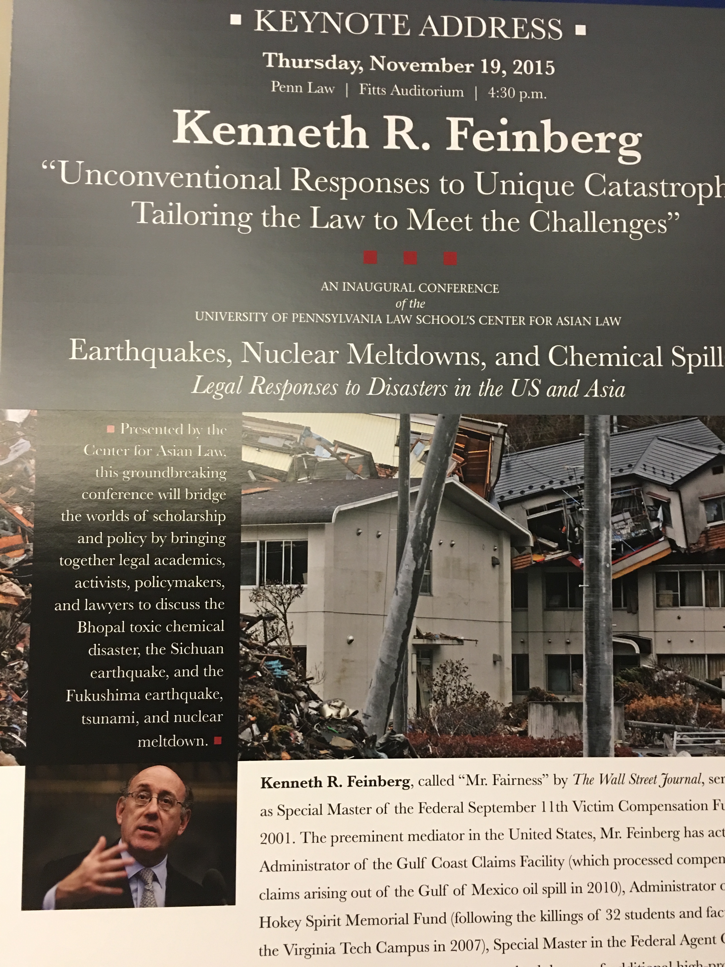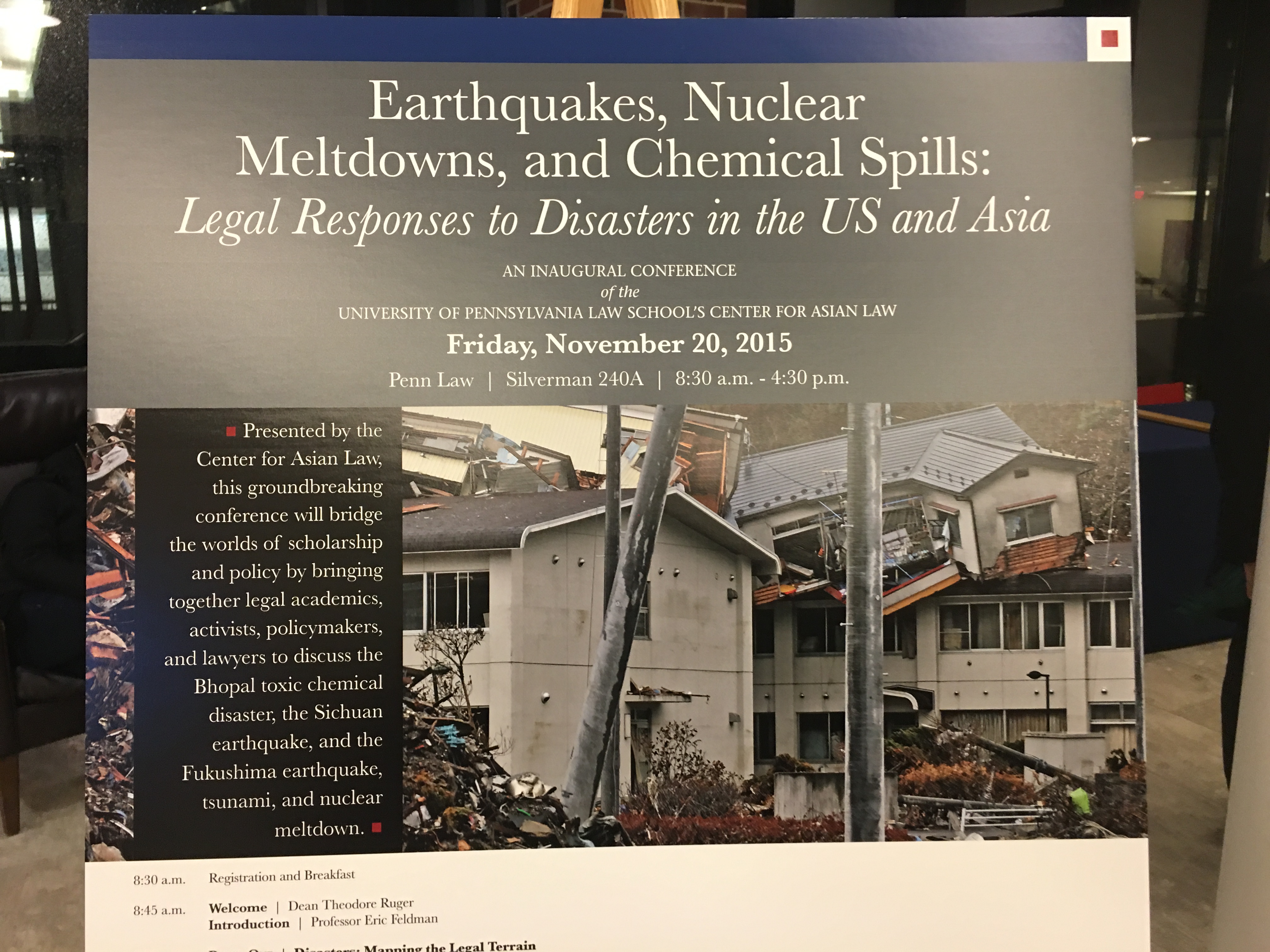 さて、今回の訪問の主目的は、ペン大ロースクールでアジアフォーカスのプログラムを立ち上げ、その記念行事の一つとして、アジアでの「大災害と賠償」のテーマで、組まれたカンファです。