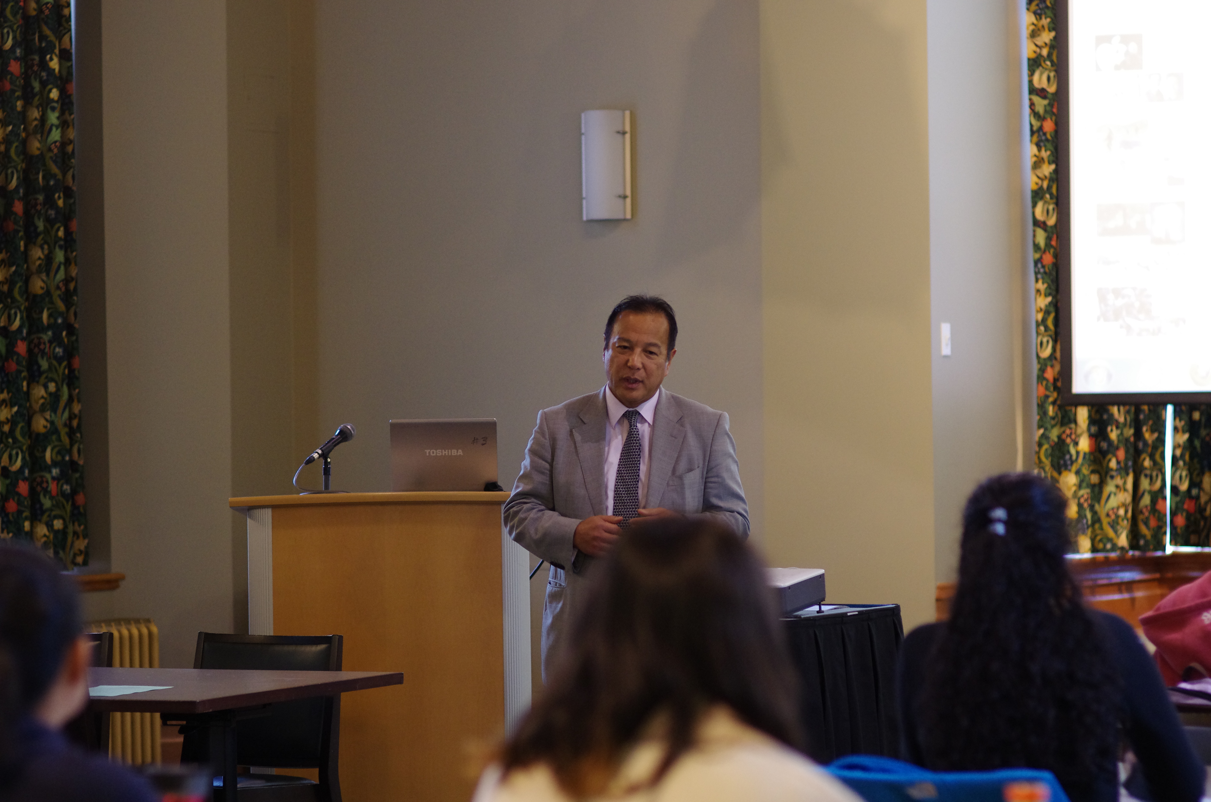 ご当地の名門校、University of British Columbiaのキャンパスへ向かいます。ここのIrving Barber Learning Centerで90分ほどの講演をしました。岡田総領事が司会の労をとってくださいました。