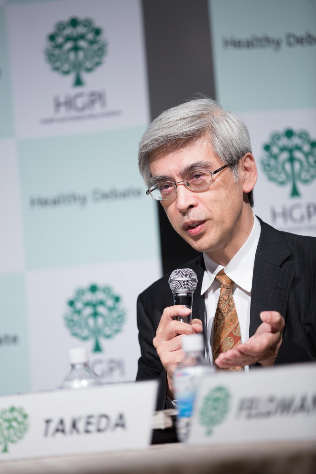 第1部は「医療の持続可能性」のテーマで、財務省主計官の宇波弘貴さん、厚生労働省政策統括官の武田俊彦さん、テレビでもおなじみのモルガン・スタンレーMUFGのロバート・フェルドマンさん、司会はHGPIの小山田万里子さんです。