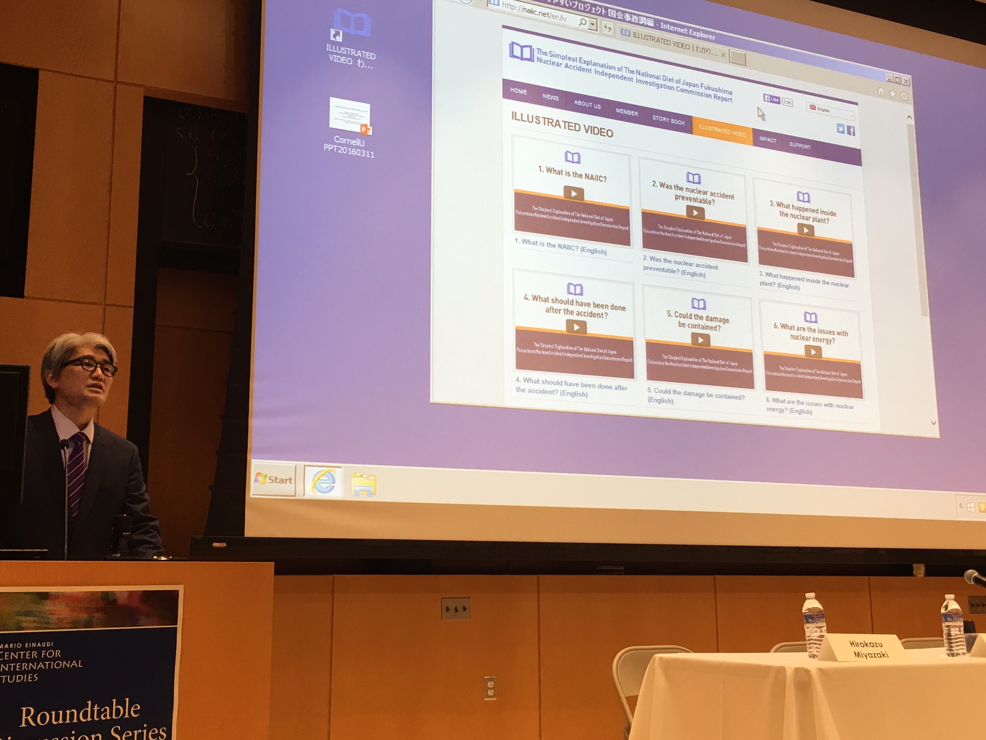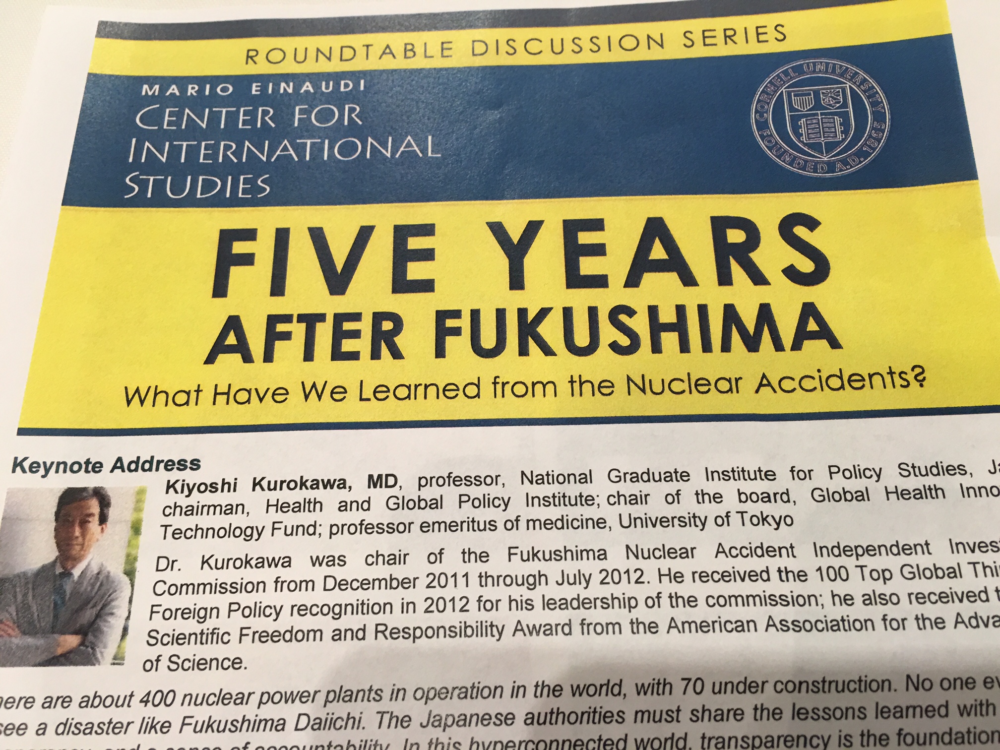 その後すぐにIthaca(NY)にあるコーネル大学にいきました。ここのマリオ・アイナウディ国際関係研究センター(センタ―長は宮崎教授)による企画で、3月11日に合わせて、「原発事故から何を学んだのか」を議論しようという目的です。
