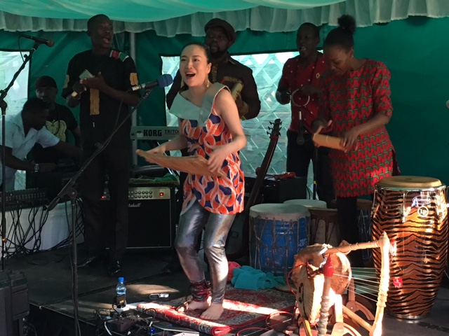 アニャンゴさんと現地のバンド演奏で、みなさん歌を一緒に歌いはじめ、踊りはじめるという素敵なイベントになりました。