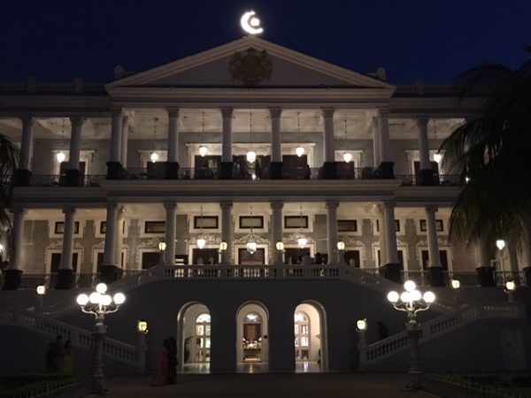 最終日の晩餐はTaj Falaknuma Palace(1)でした。超豪華で、世界最長とかいう101人を迎えての晩さんテーブルなどもあります。